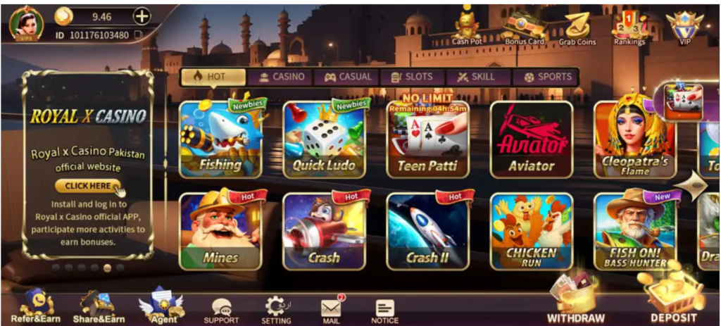 Royal X Casino Game is an online casino gaming app that offers multiple casino style games in one platform.